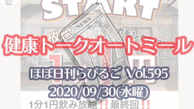 雑記 飲み会の健康トークでオートミール[ほぼ日刊らびるご vol.595] 2020-10-01 rabirgo rabirgo @rabirgoです。 久しぶりに5名で飲み会でした。ありがちな健康トークの話。 オートミールの食べ方 数ヶ月前にも同じメンバーで飲ん …